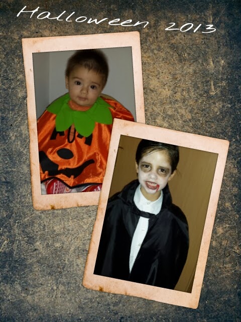 O primeiro do B. O Afonso queria ser um vampiro. Assim foi feita a sua vontade. O B. não podia ficar de fora. Vi e gostei da ideia da abóbora!